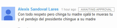 Imagen de de comentario de ALEXIS SANDOVAL LARES vía GOOGLE+ a CR®.